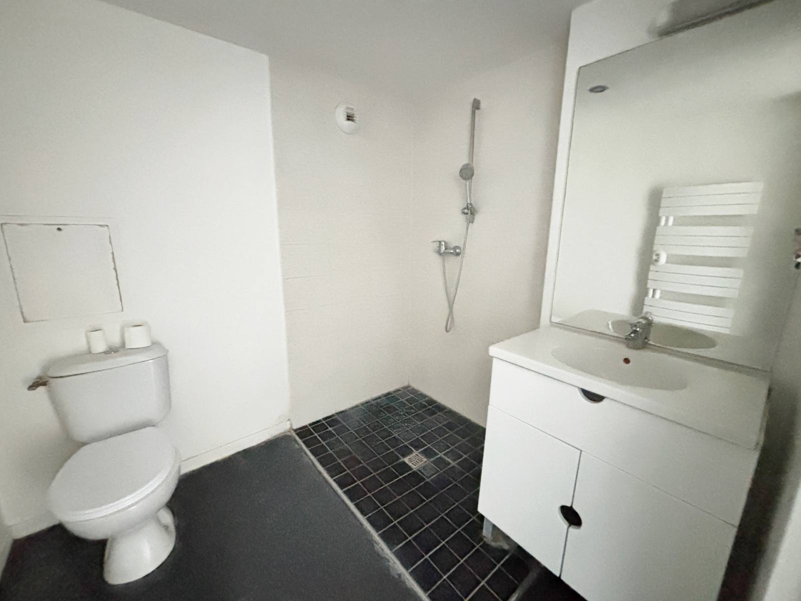 Séjour béton ciré, cuisine équipée, persiennes salle de douche , chambre de 23m2 en mezzanine chauffage au norme BBC