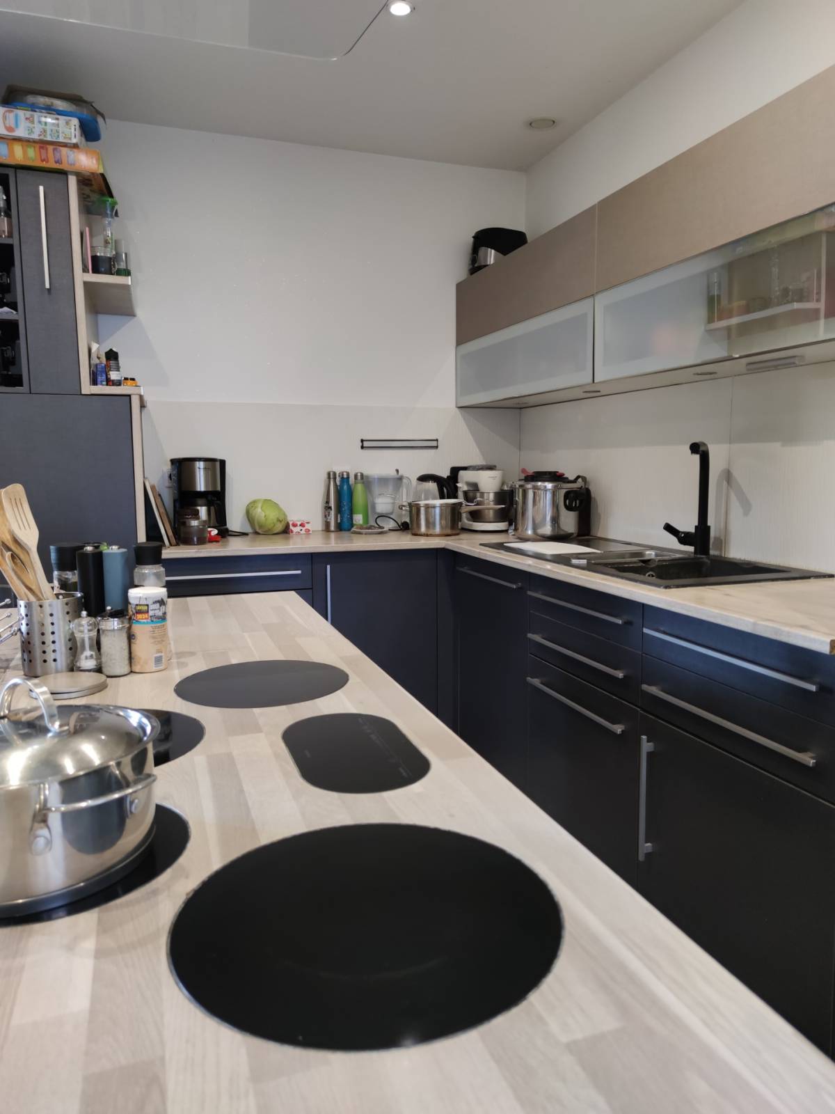Maison semi-individuelle comprenant : Hall, séjour salle à manger lumineux de 30 m2, Grande cuisine séparée et équipée Mobalpa 16 m2 Buanderie